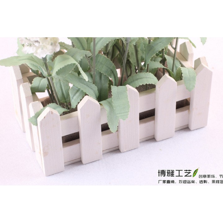 Chất liệu: gỗ và hoa lụa cao cấpHàng rào gỗ: dài 16 x 9cm