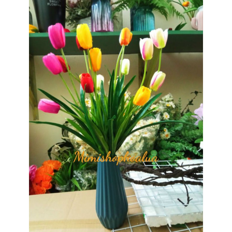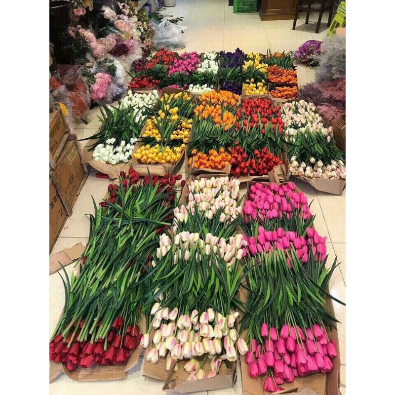 hoa giả đang được sử dụng nhiều trong lĩnh vực trang trí nội thất, trang trí sự kiện, tạo không gian tươi mới cho ngôi nhà của bạn.cành hoa tuylip giả chất liệu cành nhựa dẻo, lõi thép nên dễ dàng uốn, nắn tạo dáng. bông hoa chất liệu vải, màu sắc tươi sáng giống hoa thật 99%.