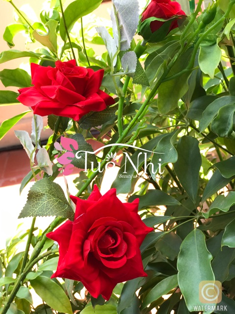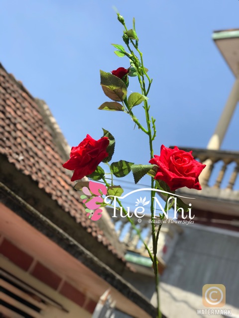 💢 CÀNH HỒNG NHUNG CAO CẤP💢- Khách có thể thấy vì là dòng cao cấp nên cành hồng nhung nhìn như thật từng chi tiết nhỏ như lộc và lá, tới đừng đường sắc nét của hoa.