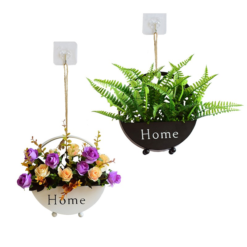Giỏ hoa giả treo tường, để bàn trang trí decor theo phong cách Châu Âu hiện đại- Thiết kế hình tròn độc đáo với chữ Home sẽ giúp bạn biến những bức tường nhàm chán, tẻ nhạt trong căn hộ chung cư trở nên sinh động, phong cách hơn
