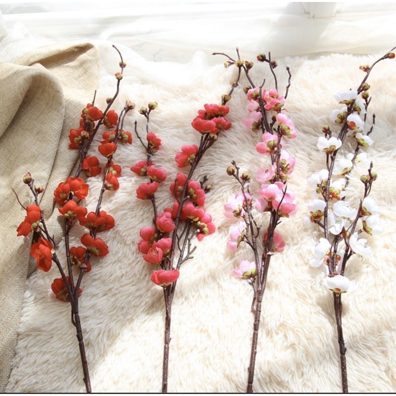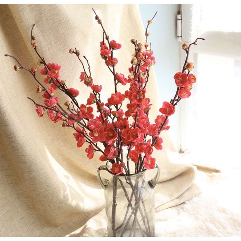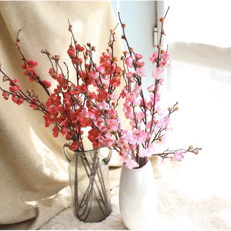 Hoa giả LMS- cành Mai nhân tạo 93cm trang trí tết, hoa decor hoa mùa xuân