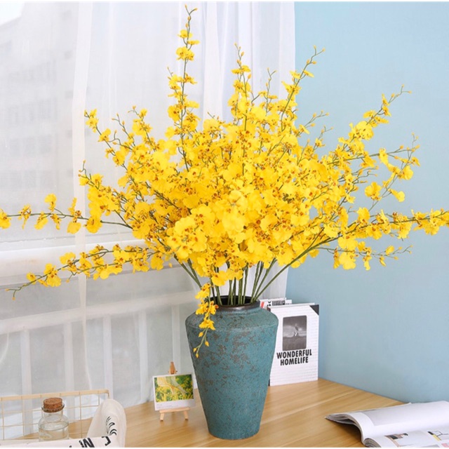 Giới thiệu Hoa giả - Một cành Lan vũ nữ loại 1 có 5 nhánh cao 95cm. Hoa lụa cao cấp decor không gian sang trọng tươi mới.