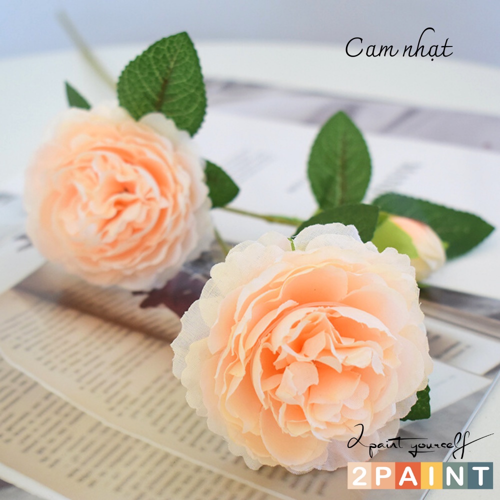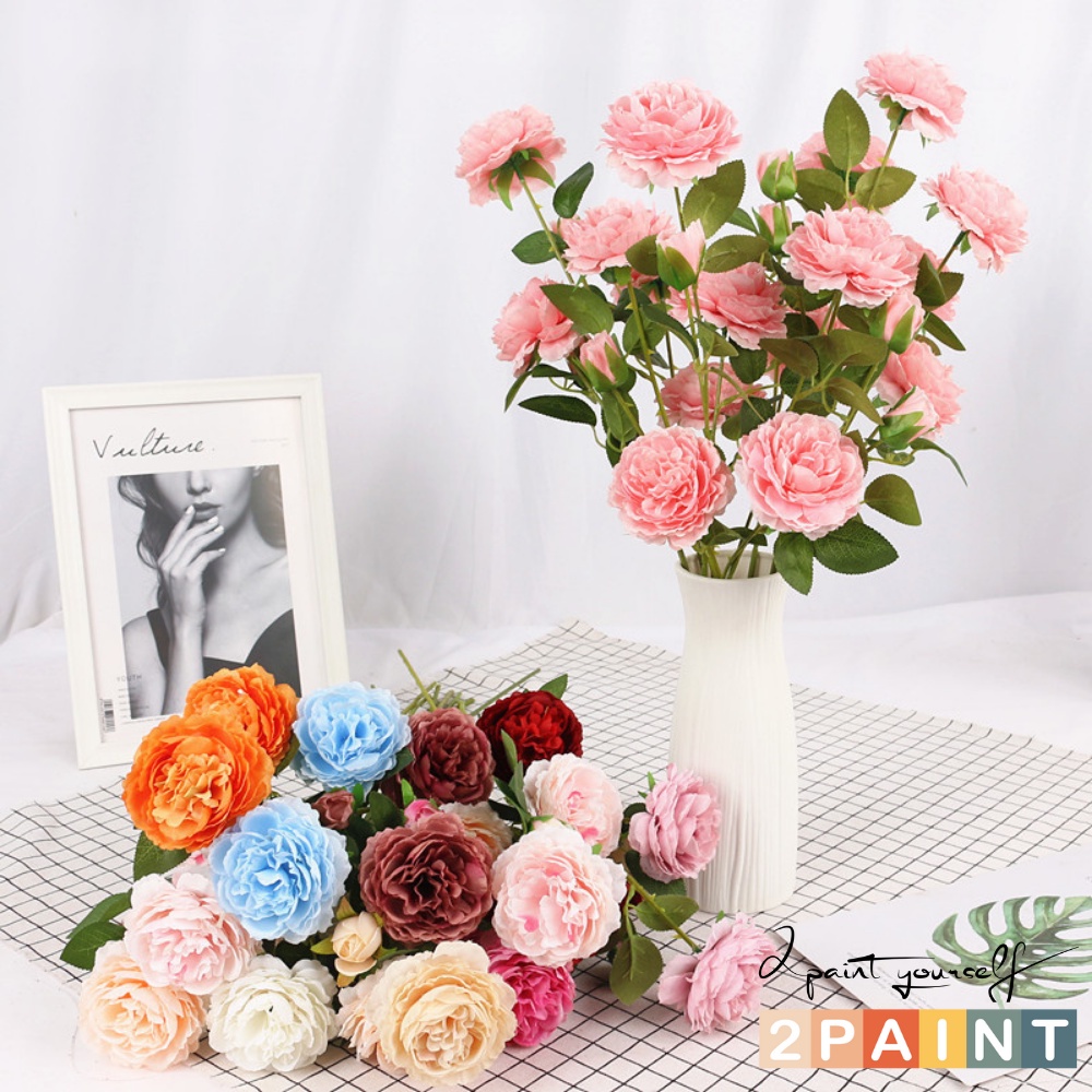 Hoa giả decor trang trí cành mẫu đơn 3 bông phong cách Hàn Quốc 2PAINT