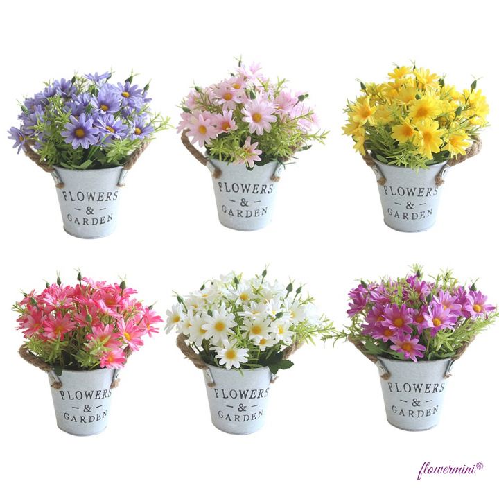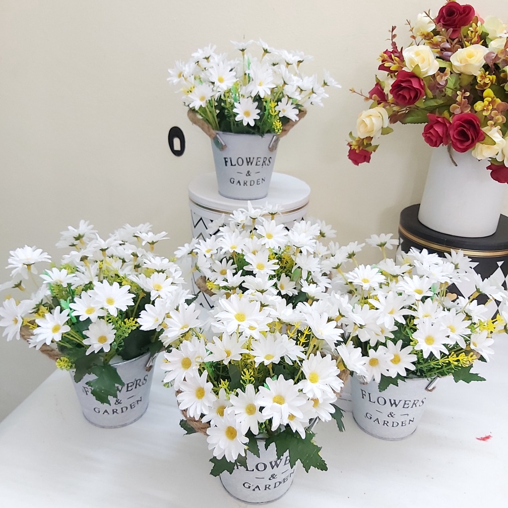 Chậu hoa giả bằng thép cắm sẵn cúc họa mi trang tríTHông tin sản phẩm: