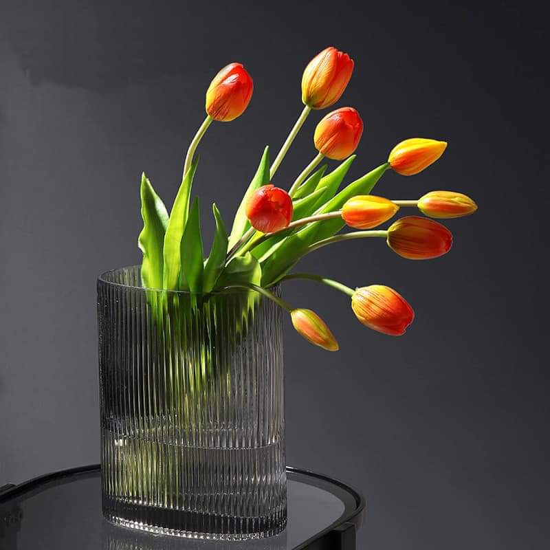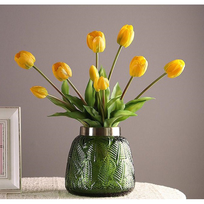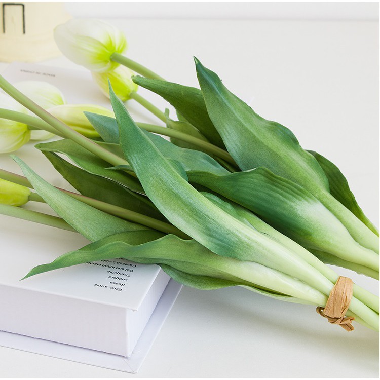 - Hoa tulip cao cấp hao giả chuyển đổi màu sắc của lá, hoa là tự nhiên và cầm lên có cảm giác tinh tế, sang trọng.