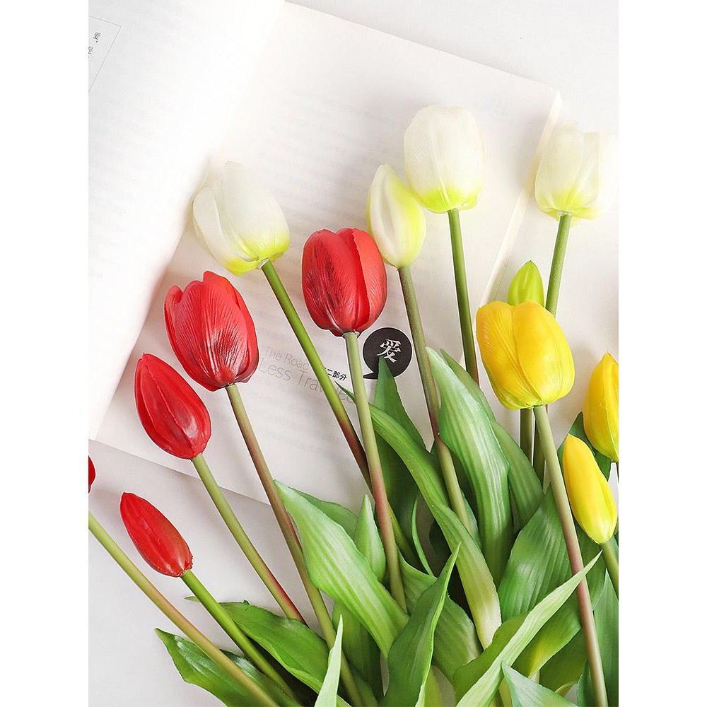Hoa giả tulip Châu Âu cao cấp 5 nhánh kèm nụ tuyệt đẹp giống thật trang trí nhà cửa
