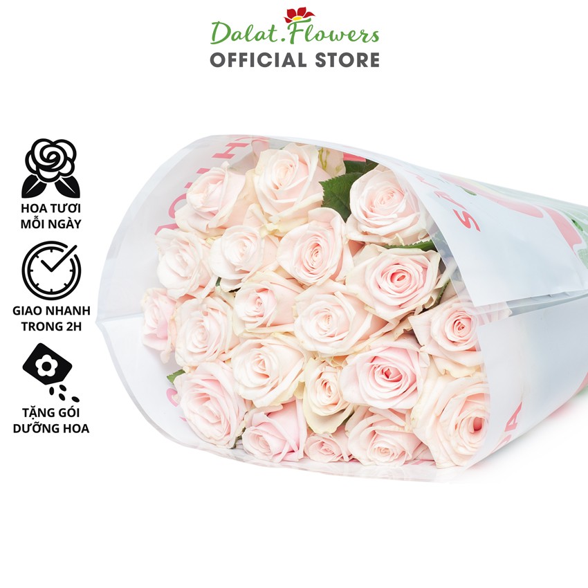 XUẤT XỨ:Tại Việt Nam, hoa hồng được trồng ở nhiều nơi nhưng duy chỉ có Đà Lạt là có khí hậu phù hợp để hoa đạt được chất lượng bông tốt nhất. Hoa hồng Đà Lạt thường đẹp hơn các nơi khác, cánh hoa to đều, mịn, đẹp, đa dạng về màu sắc như đỏ, hồng, trắng, vàng, cam,…