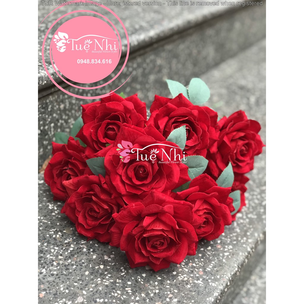 💥 CỤM HOA HỒNG NHUNG 9b.👉 Bông to 11cm , cành dài 35-40cm