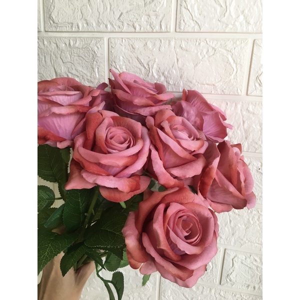 Hoa Hồng giả/ Hoa Hồng Nhung cao cấp cành dài 70 cm giống thật 99% (ảnh thật)