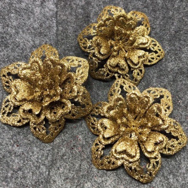 hoa hồng , hoa trà , sen đá trang trí oản tải lộcchất liệu phủ nhũ kim tuyến