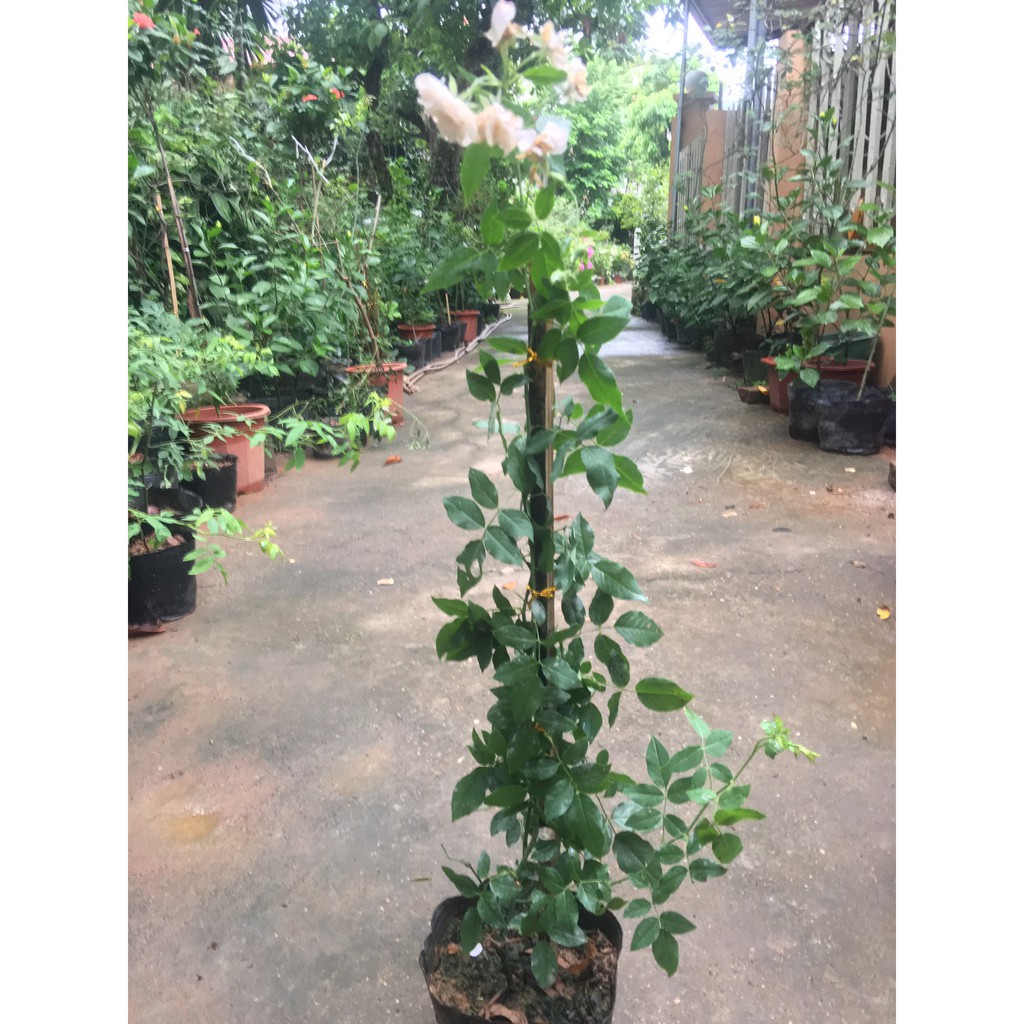 Nhà cửa & Đời sống > Làm vườn > Cây cảnh || Hoa hồng leo, giống hoa hồng trắng phớt hồng Đà Lạt cây đã có hoa như hìnhCòn hàng