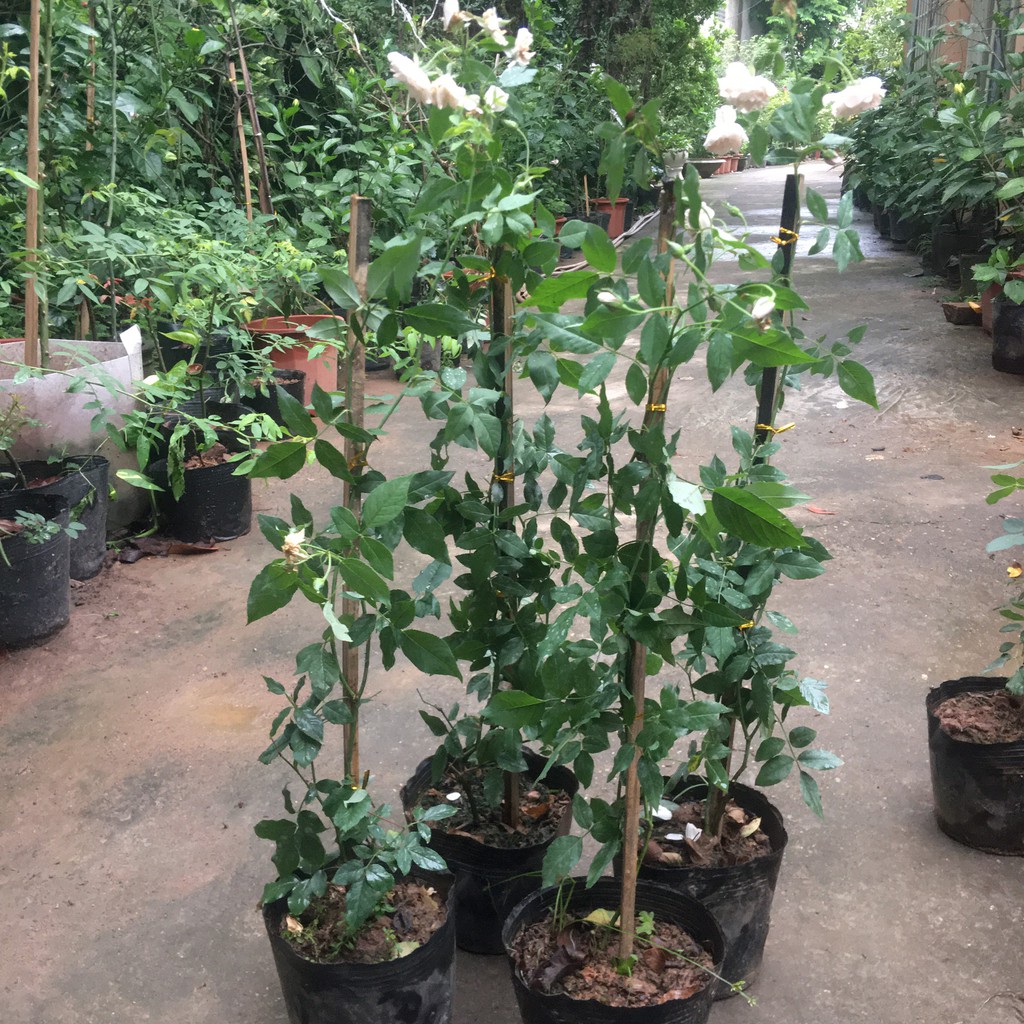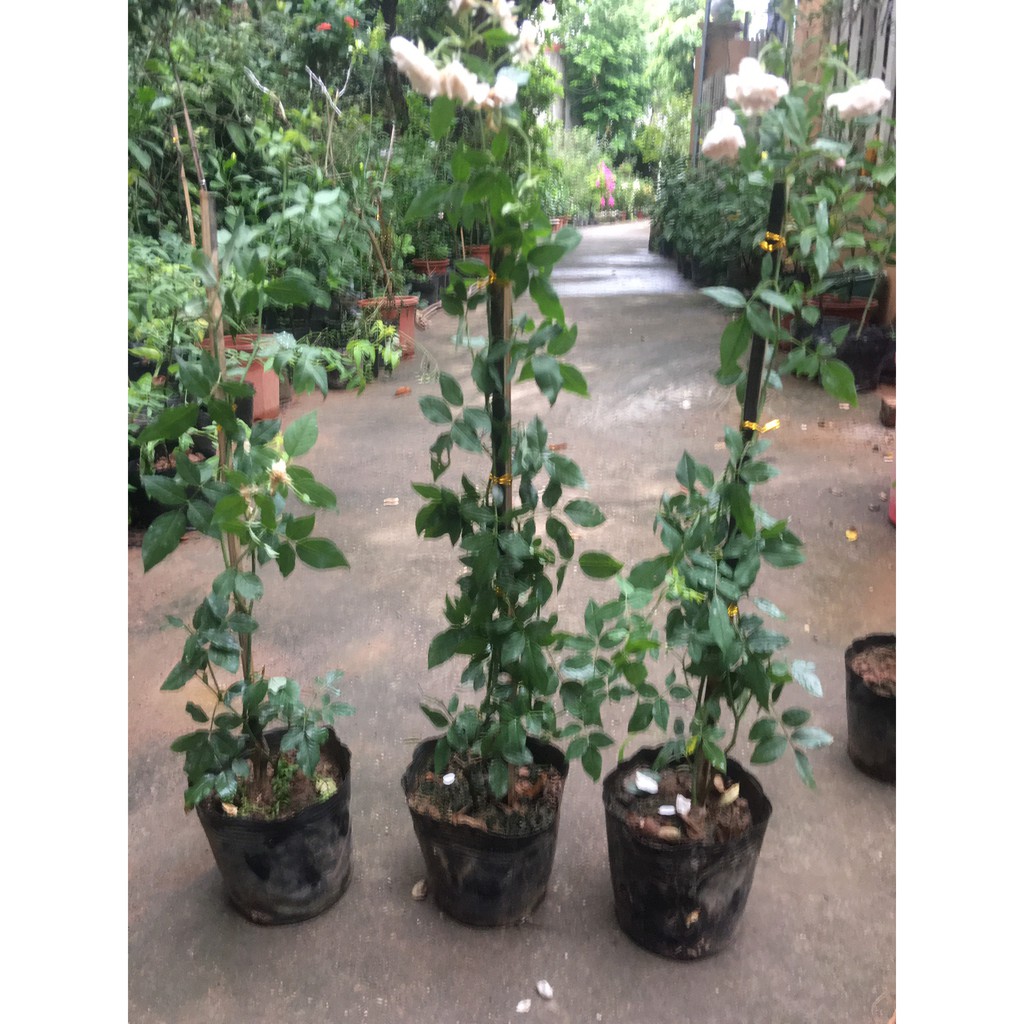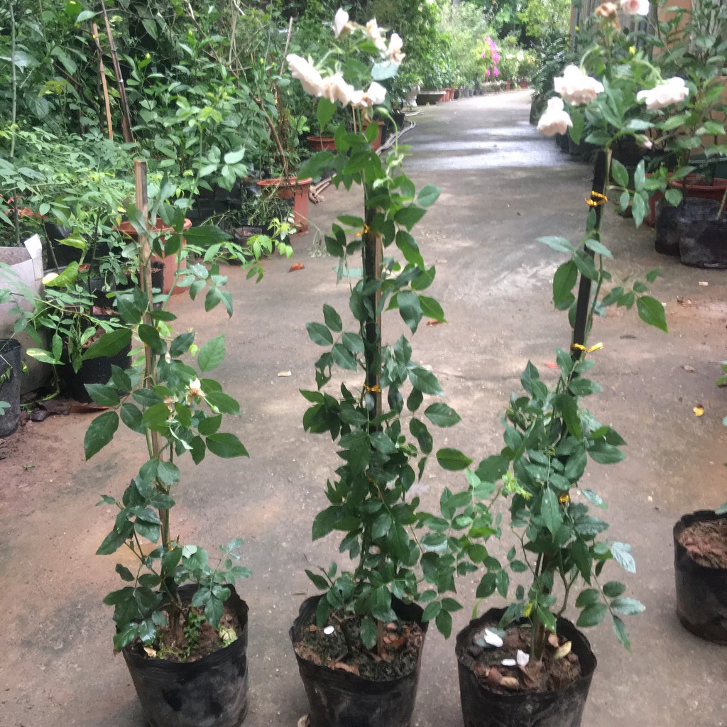 Hoa hồng leo, giống hoa hồng trắng phớt hồng Đà Lạt cây đã có hoa như hình