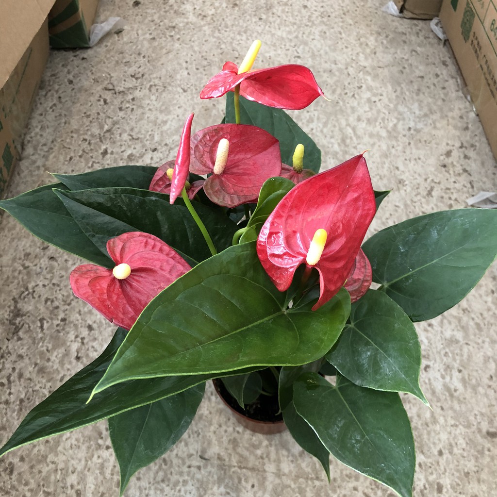 Nhà cửa & Đời sống > Làm vườn > Cây cảnh || Cây hoa HỒNG MÔN ĐỎ cao 25-30cm, Cây có nhiều hoa đẹp bụi cây to nhiều nhánh sum suê dễ trồng và chăm sóc, thích hợp bànCòn hàng