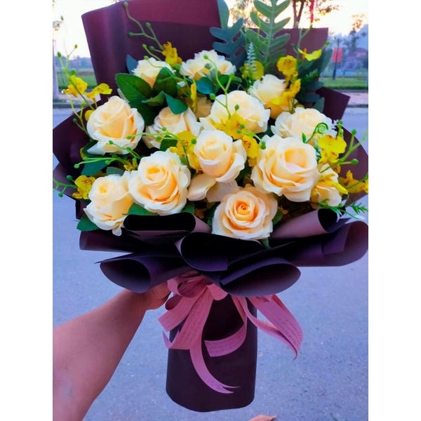 👍 cụm hoa Hồng cao 45 cm gồm 9 bông mỗi bông có kích thước khoảng 10 cm.👍 thân cụm Hồng được làm từ thép bọc nhựa PVC có thể uốn tạo kiểu.