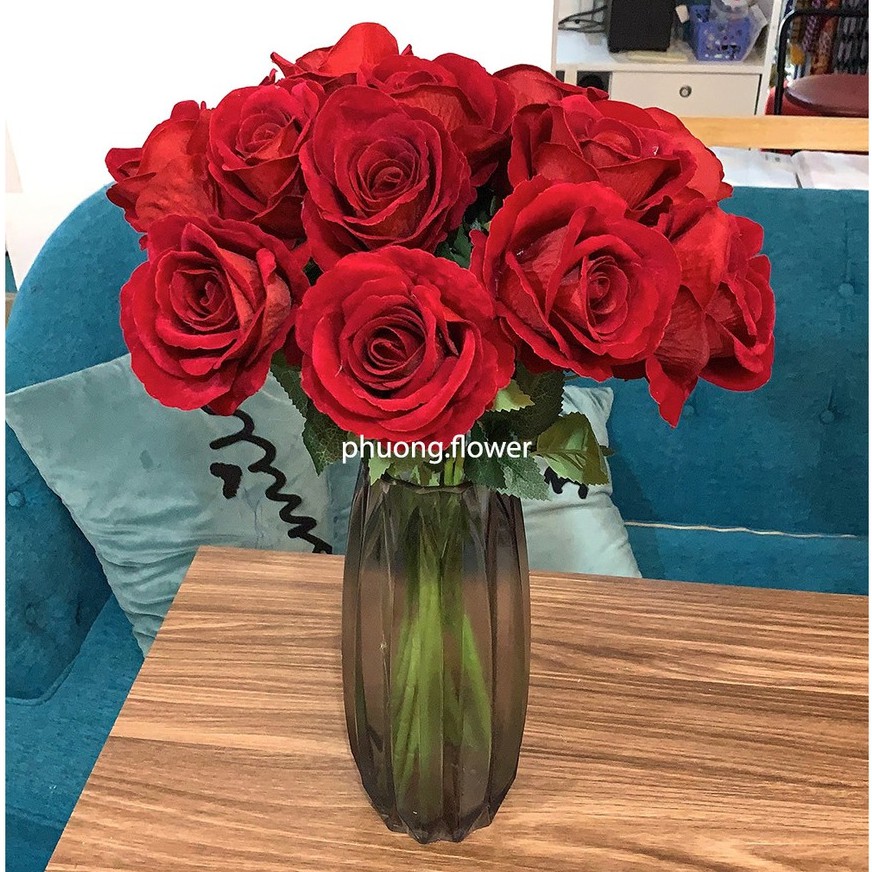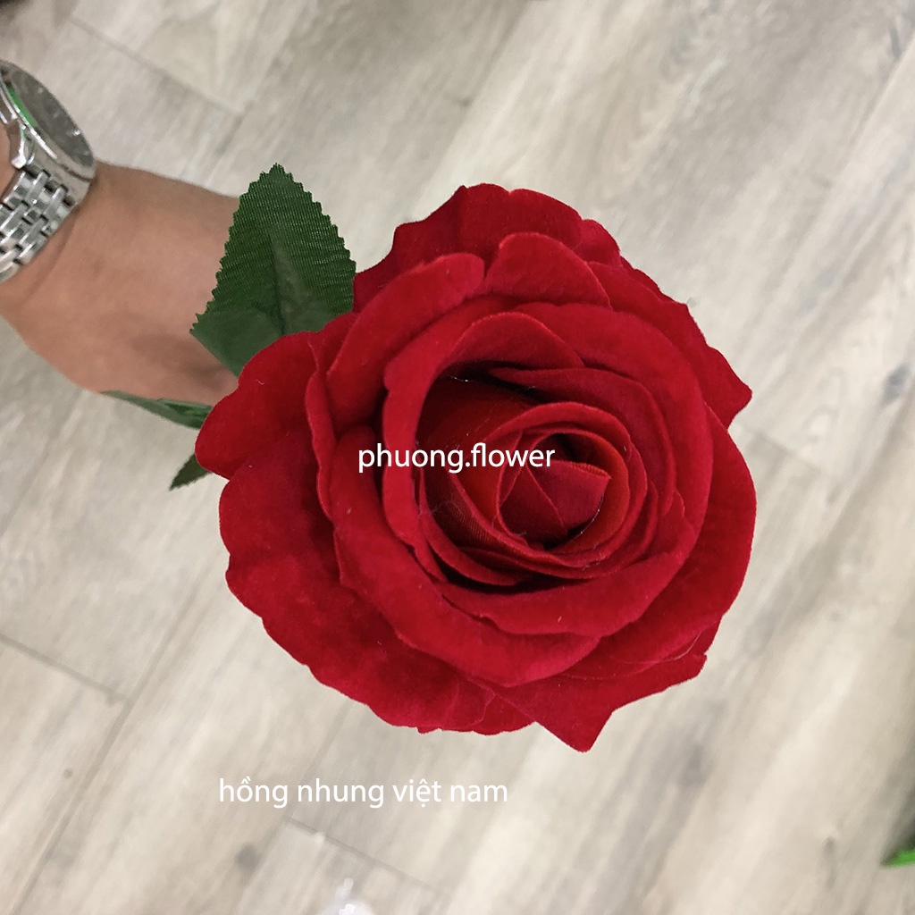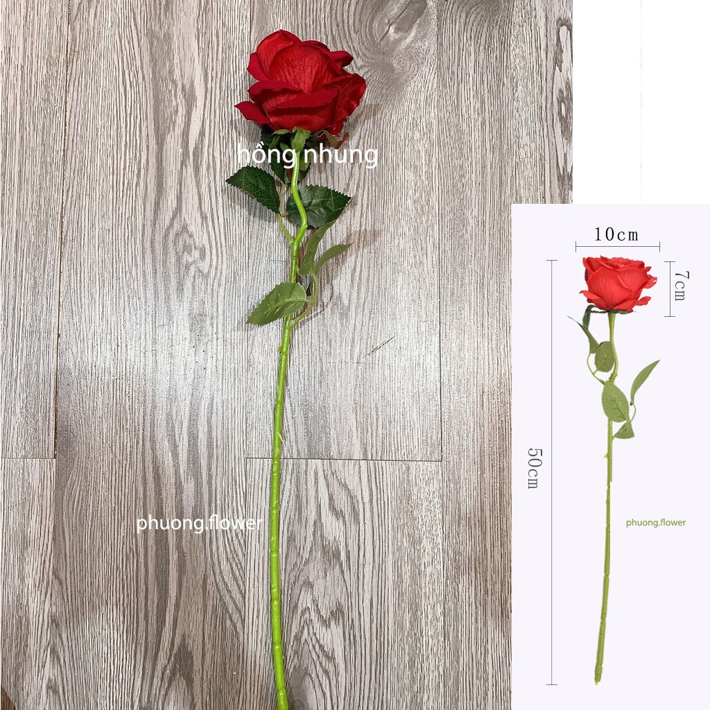 Hoa Hồng nhung lụa giả giống thật 99% loại bông lớn 9-10cm dài 50cm dùng cắm hoặc trang trí tuyệt đẹp