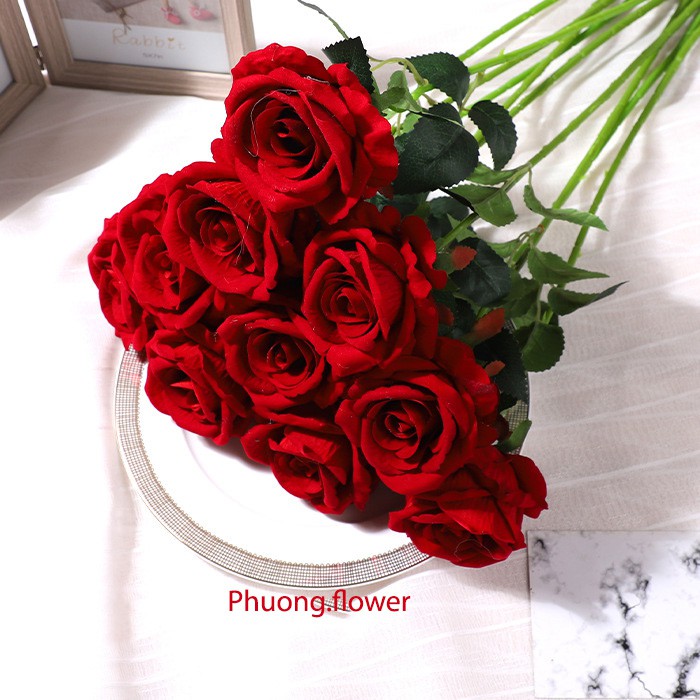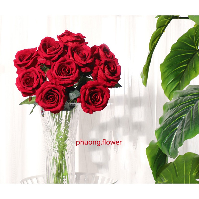 Nhà cửa & Đời sống > Trang trí nhà cửa > Hoa trang trí || Hoa Hồng nhung lụa giả giống thật 99% loại bông lớn 9-10cm dài 50cm dùng cắm hoặc trang trí tuyệt đẹpCòn hàng