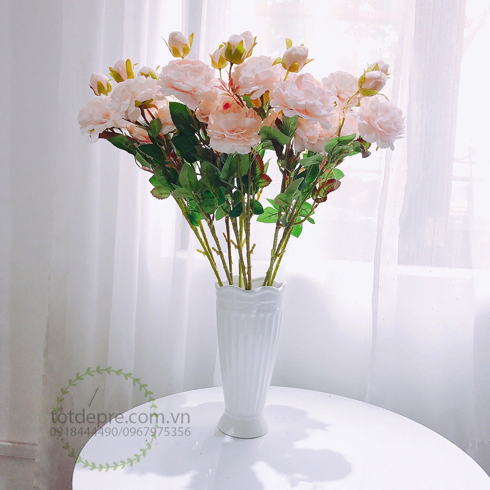cành hoa dày dặn. giống thật. nhiều tầng . chất vải nhìn mịn màng ít để tại tưa ở mép . lá có mép răng giống thật. hoa đẹp đồng đều