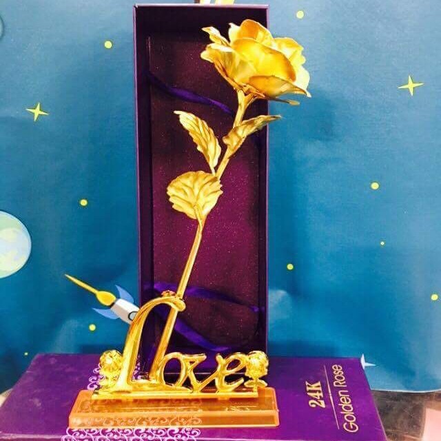 Hoa hồng phũ nhũ vàng hộp to , hoa sang chảnh k mùi hoàn toàn k độc hại , màu bền k phai , tặng ng thân vô cùng ý nghĩaGiá SCS