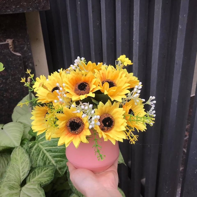 - Chỉ cần 2 cành/chùm hoa hướng dương là bạn sẽ cắm được 1 lọ hoa xinh yêu như hình ảnh shop chụp số 1 và 2 ạ!