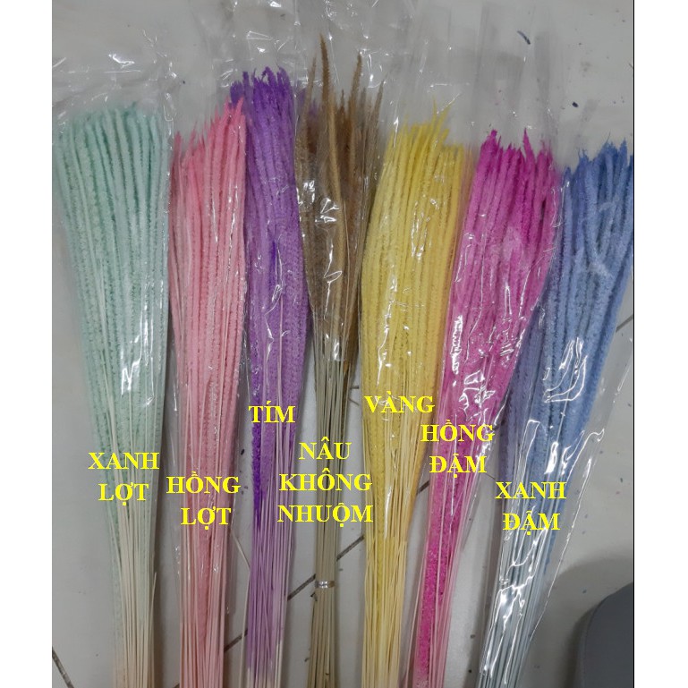 ** Là hoa thật phơi khô, nhuộm màu theo công nghệ cao, không bay màu trong quá trình sử dụng, có thể để được 2-3 năm.** Giá bán 1 bó 50 nhánh, 2 bó cắm được 1 bình đẹp
