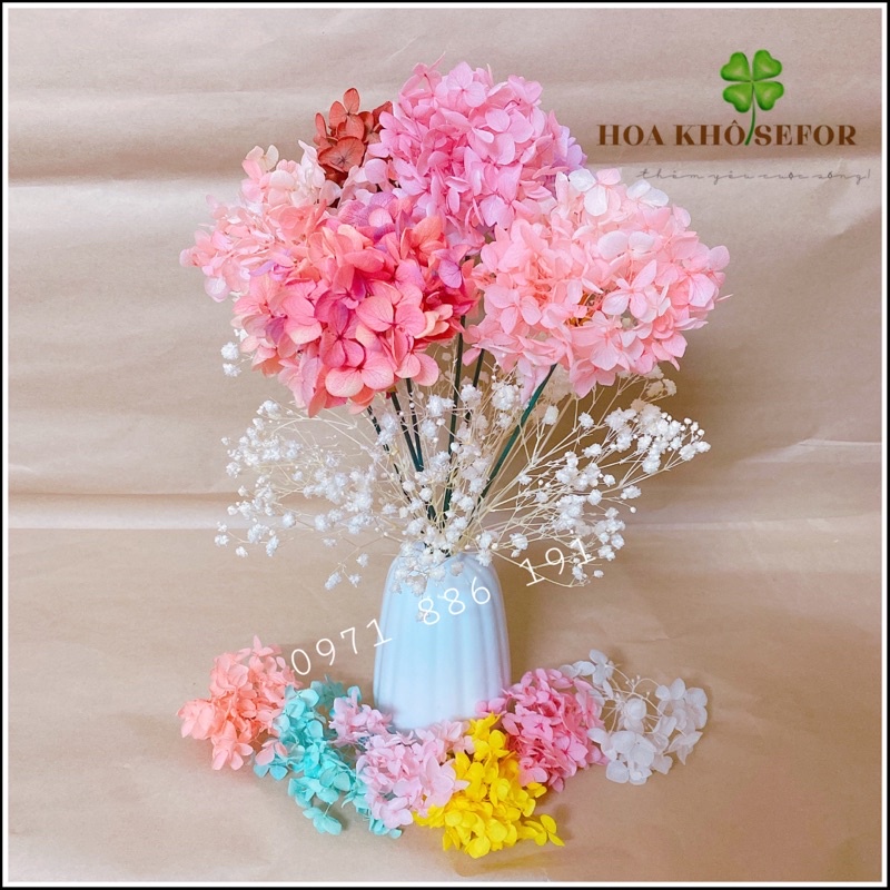 Hoa khô Cẩm Tú Cầu mix Baby Bloom cao cấp trang trí phong cách Vintage