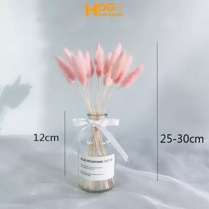 Hoa khô, lọ hoa thủy tinh kèm hoa đuôi thỏ,cỏ lau Mỹ cắm sẵn cao 25cm trang trí, decor nhà cửa