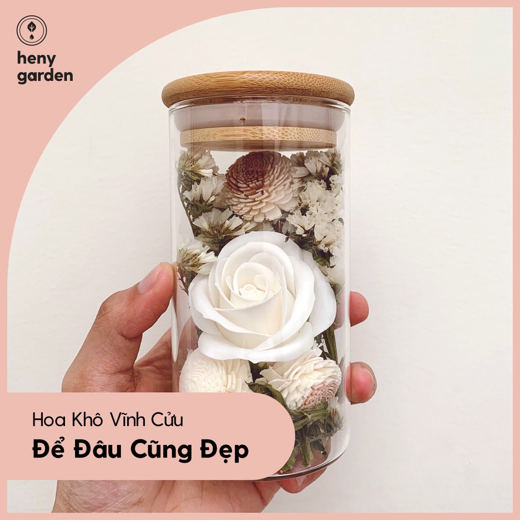Hoa Khuếch Tán Tinh Dầu HENY GARDEN Set Kèm Lọ Nắp Gỗ, Món Quà Mới Lạ