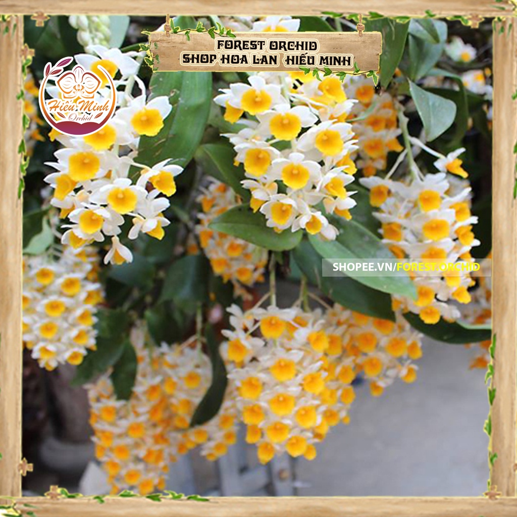 2) Hoa Lan đột biến Kiều Vàng có tên khoa học là Dendrobium Thyrsiflorum.