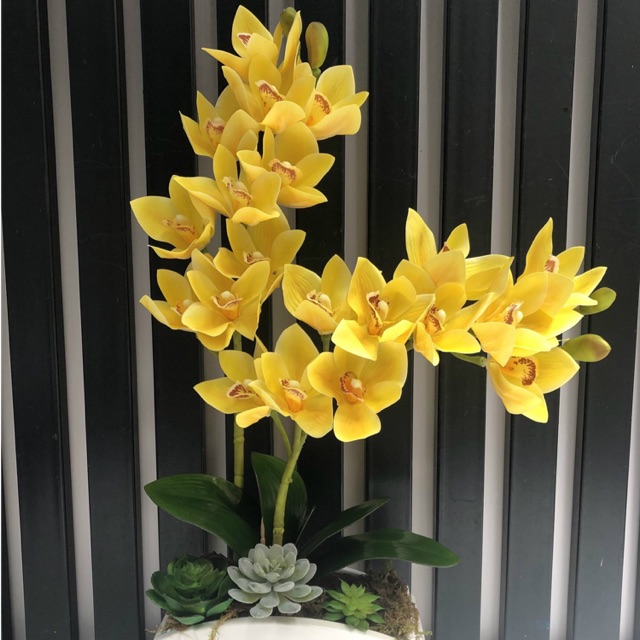 Nhà cửa & Đời sống > Trang trí nhà cửa > Hoa trang trí || Hoa lan giả - Hoa địa lan cao su 9 bông vàngCòn hàng
