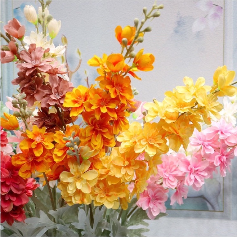- 👉 Chất liệu: Hoa bằng lụa cao cấp nhìn rất thật và bền mầu. Thân mốc nhìn rất tự nhiên và đẹp Cành có thể uốn, bẻ theo sở thích.