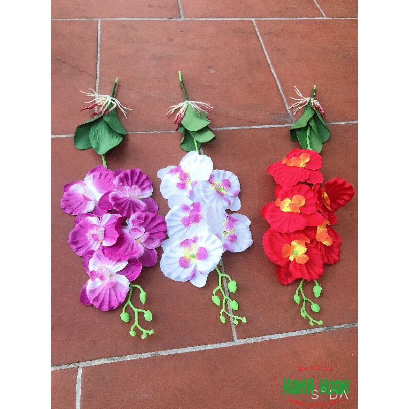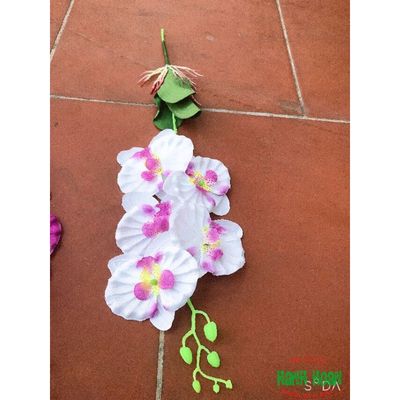 Hoa lan hồ điệp 5 bông kèm lá có rễ- Hoa giả