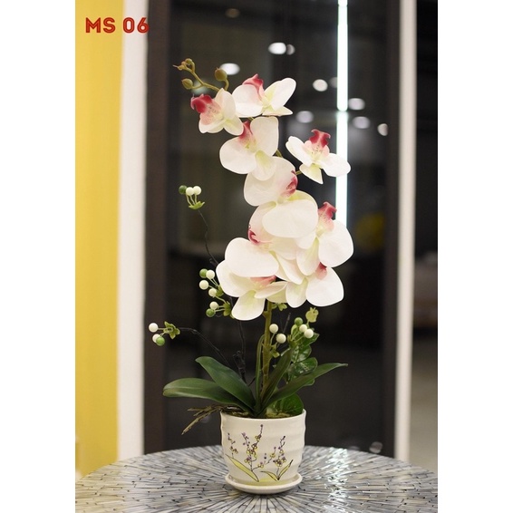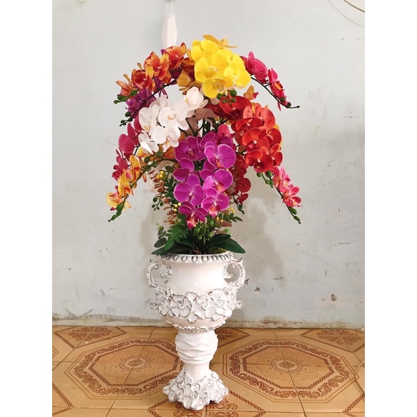 Nhà cửa & Đời sống > Trang trí nhà cửa > Hoa trang trí || Hoa lan Hồ điệp cao su 9 bông loại 1. Cành dài 90cm, chậu hoa để bàn, phòng khách trang trí nhà cửaCòn hàng