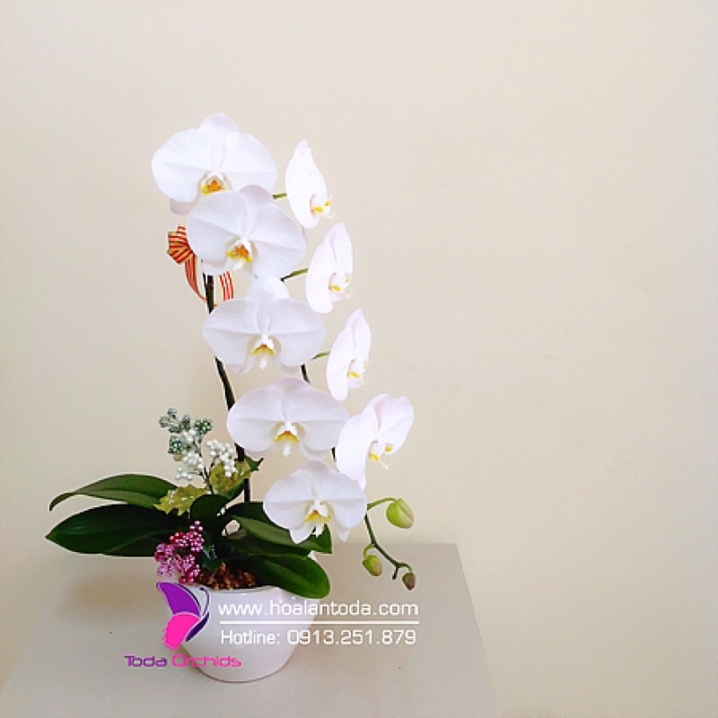 Giới thiệu Hoa lan Hồ điệp cao su 9 bông (Thân Đốm) Cánh ướt loại 1. Cành dài 90cm, chậu hoa để bàn, phòng khách trang trí nhà cửa