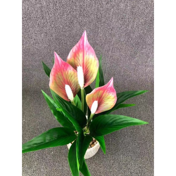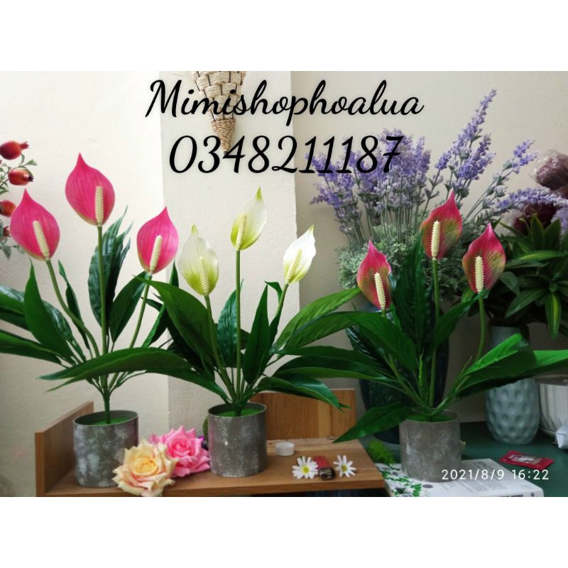 cây hoa lan ý giả với màu sắc và hình dạng giống cây thật nên thích hợp trang trí khuôn viên nhà hàng, trường học, studio...cây cao khoảng 50cm,