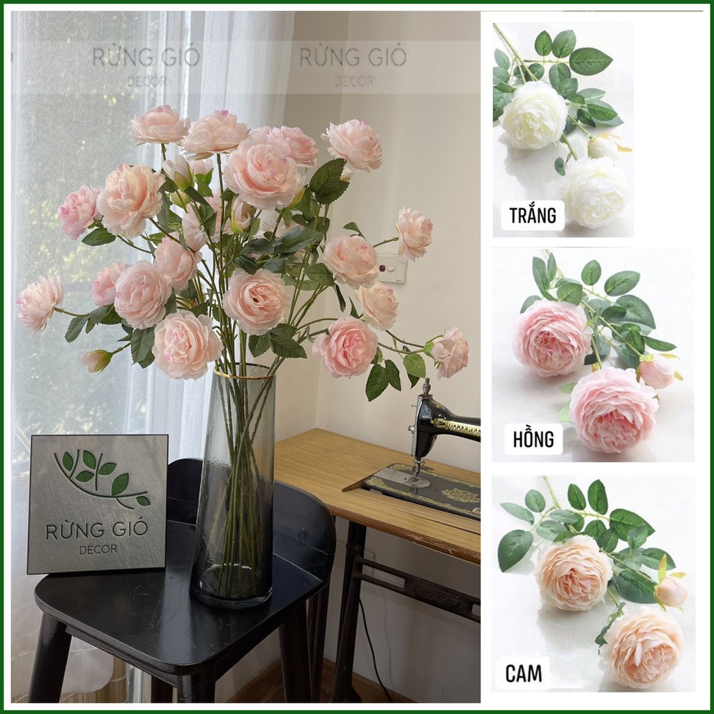 [ Hoa Giả ] Đẹp, tinh tế, sang trọng.Hoa giả nhân tạo, 1 cành Hoa mẫu đơn cành 3 bông NỤ NGẮN
