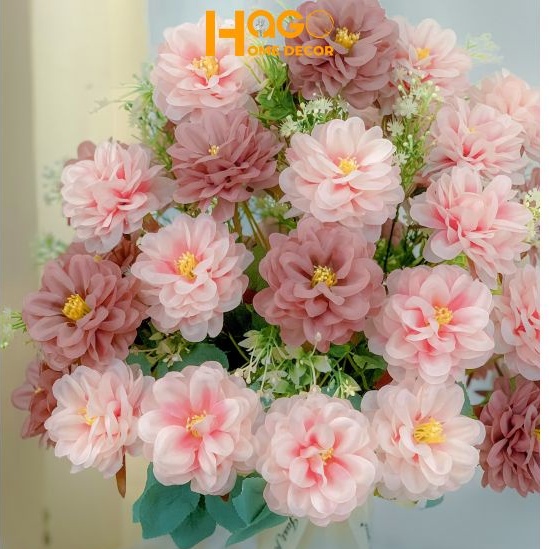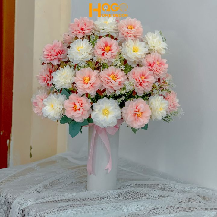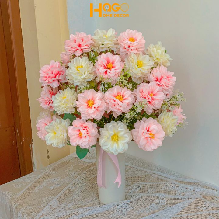 Giới thiệu Hoa lua, bình hoa cúc Pháp cao cấp cắm sẵn cao 48cm trang trí phòng khách, bàn lễ tân, kệ tủ,...