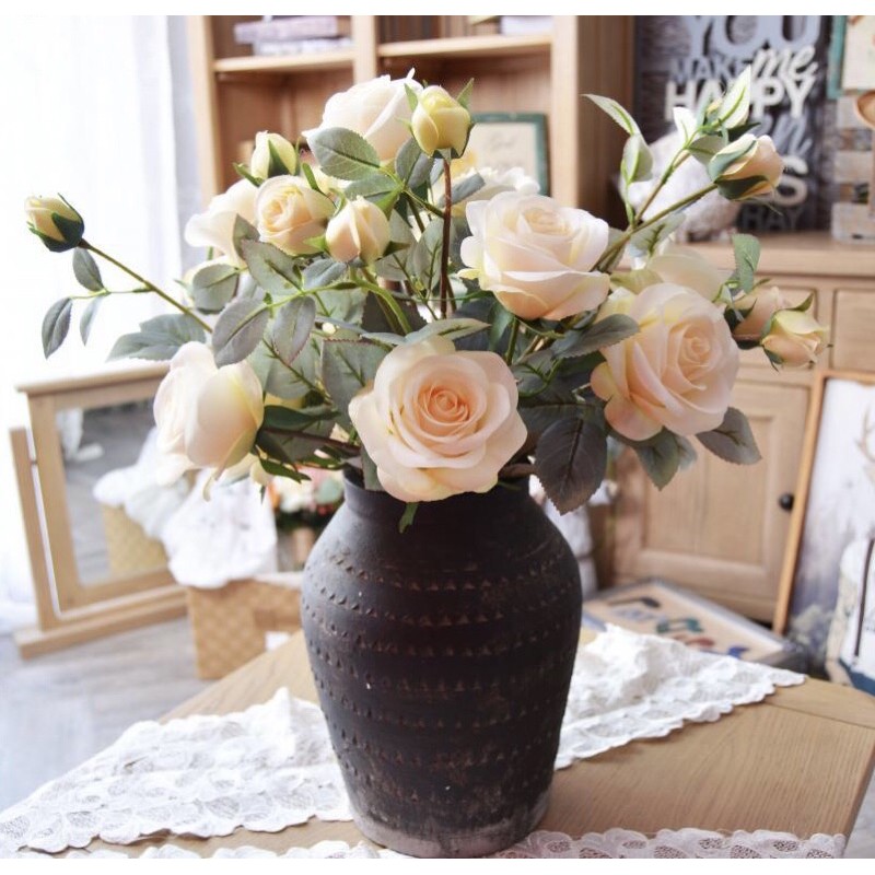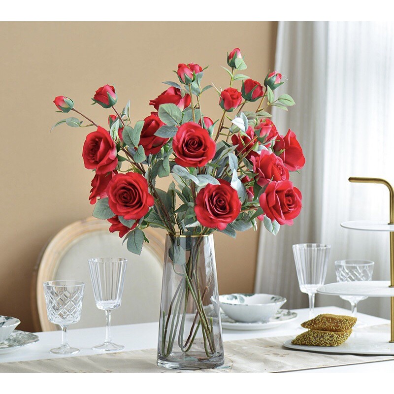 Nhà cửa & Đời sống > Trang trí nhà cửa > Hoa trang trí || Hoa lụa, cành 4 bông hoa hồng Pháp cao cấp giống thật trang trí trí sang trọngCòn hàng