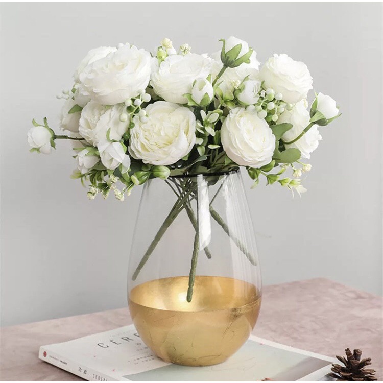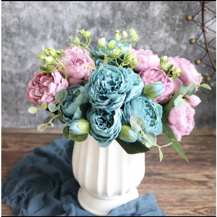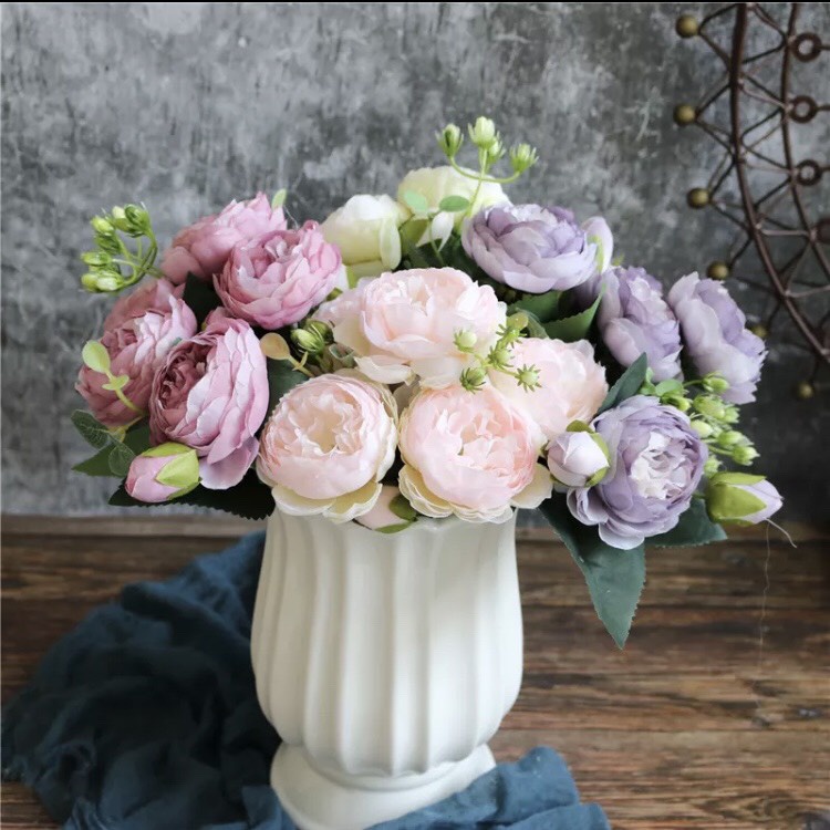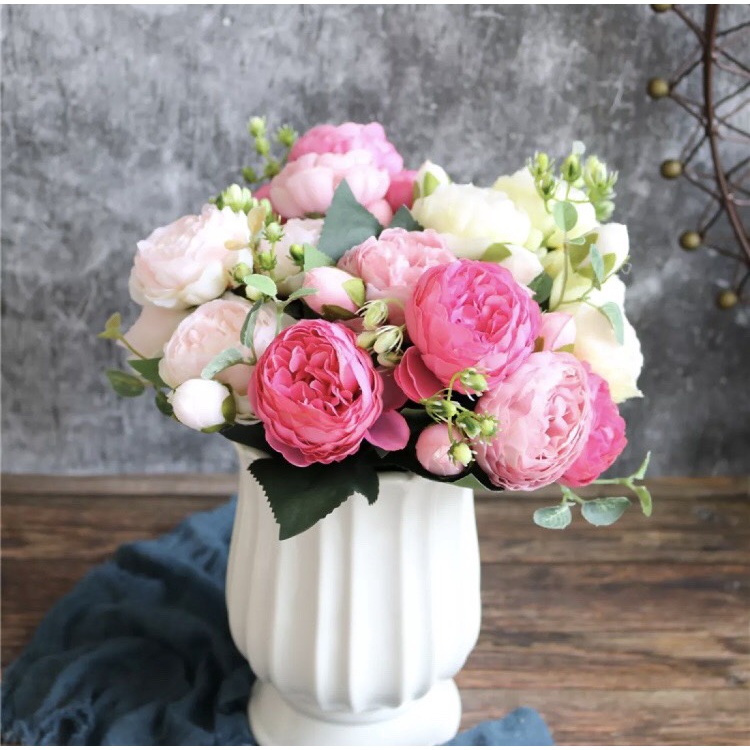 Nhà cửa & Đời sống > Trang trí nhà cửa > Hoa trang trí || Hoa lụa, cành 5 bông mẫu đơn Châu Âu kèm nụ và quả điểm siêu đẹp trang trí phòng khách sang trọng MD-05Còn hàng