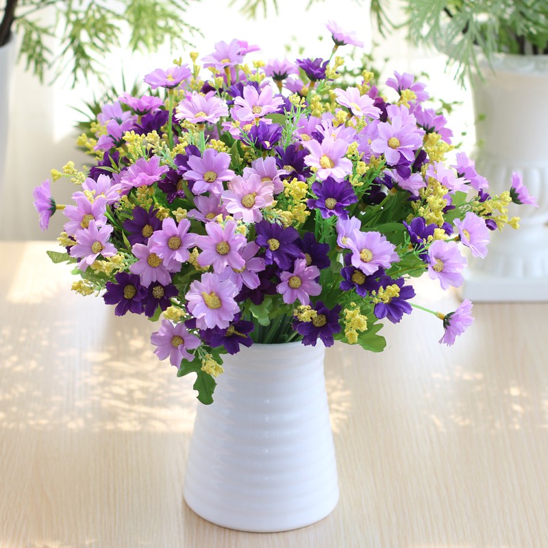 Hoa lụa, cành hoa cúc dại 24 bông màu sắc tươi sáng tự nhiên trang trí để bàn làm việc phòng khách CB235