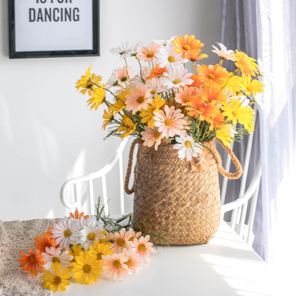 Hoa Lụa- Cành Hoa Cúc Họa Mi Giả Chất Liệu Lụa Cao Cấp Trang Trí Nhà Cửa, Decor Studio, Quán Cafe, Trang Trí Phòng Khách