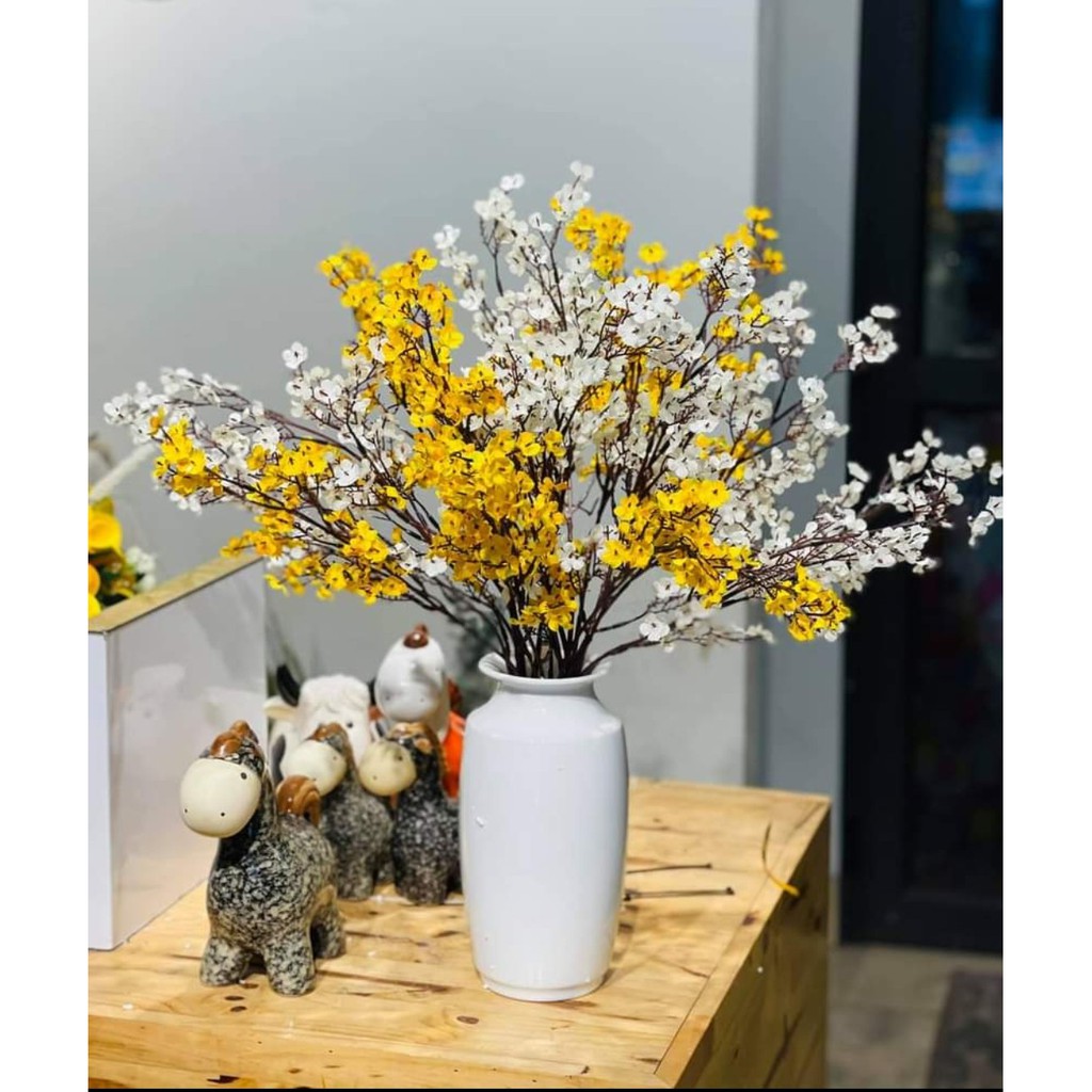 Hoa đào, hoa mai giả với thiết kế hiện trang trí tết tươi đẹp bền lâu mang lại màu sắc mới lạ giúp decor phòng kháchThông tin sản phẩm: