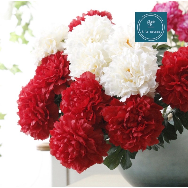 Nhà cửa & Đời sống > Trang trí nhà cửa > Hoa trang trí || Hoa lụa - Cành hoa mẫu đơn cỡ trung 38cm dùng decor trang trí nhà cửa, hoa cô dâuCòn hàng