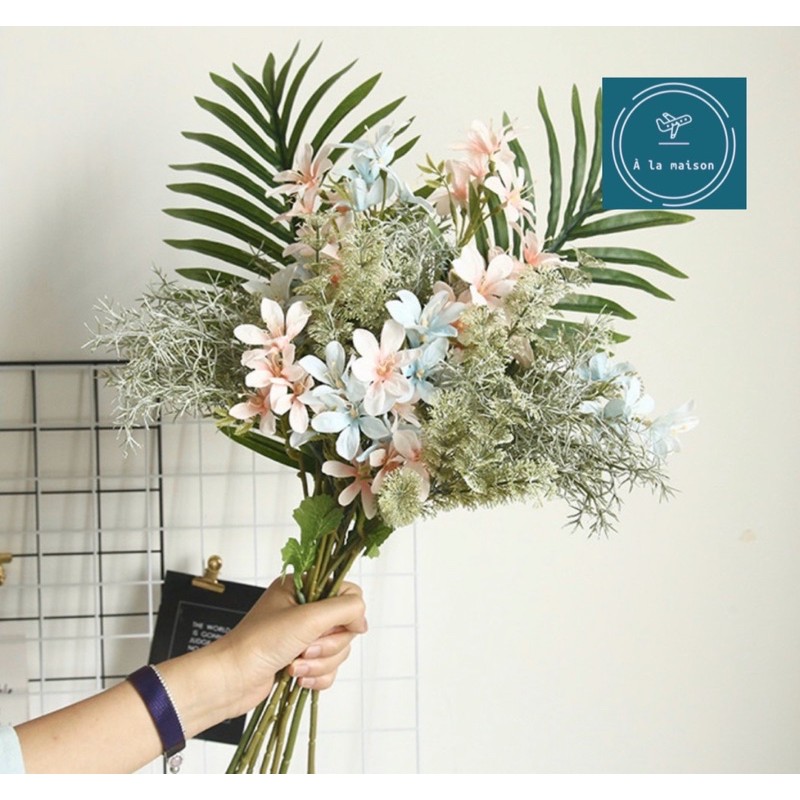 Hoa lụa - Cành hoa quỳ thiên trúc cao 57cm dùng trong decor trang trí không gian sống trang nhã nhẹ nhàng