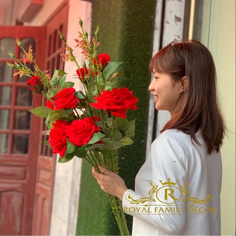 Nhà cửa & Đời sống > Trang trí nhà cửa > Hoa trang trí || [HOA LỤA] Cành hồng nhung lụa 5 nụ siêu đẹpCòn hàng