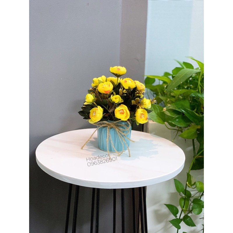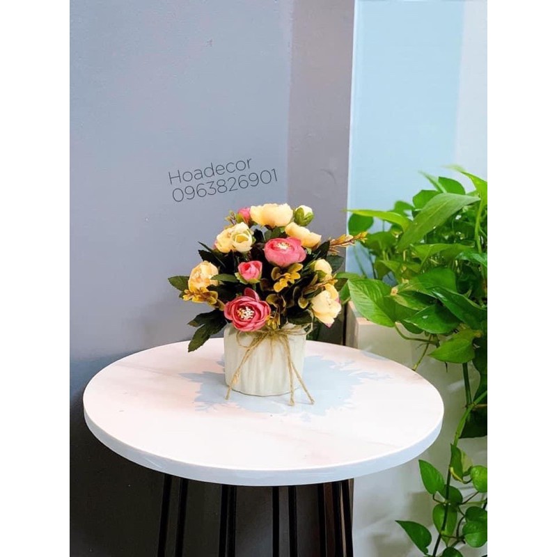 Hoa lụa , chậu hoa giả mini để bàn tông màu vintage siêu chảnh trang trí bàn học, càe, trà sữa, quà tặng