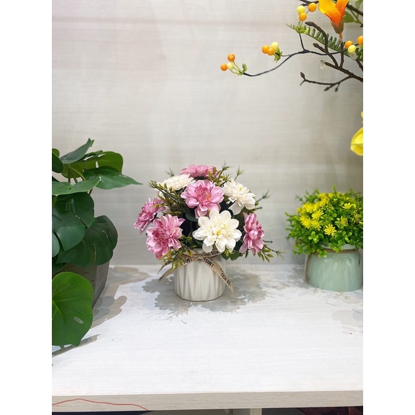 Giới thiệu Hoa lụa , chậu hoa giả mini để bàn tông màu vintage siêu chảnh trang trí bàn học, càe, trà sữa, quà tặng