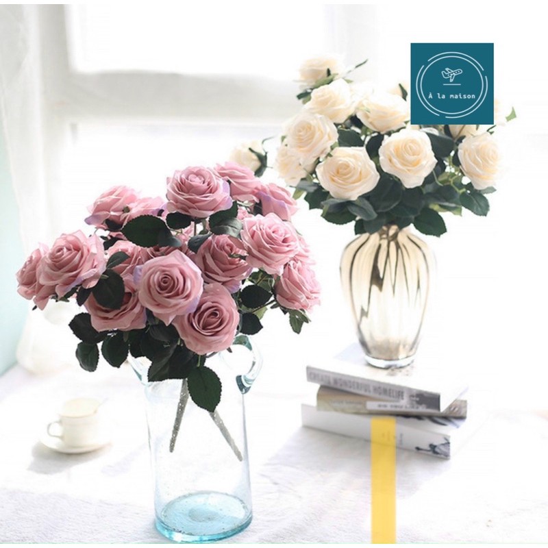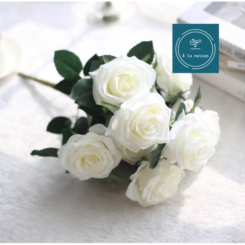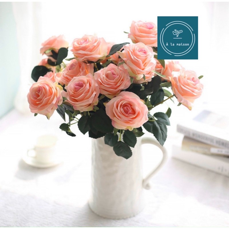 Giới thiệu Hoa lụa - Cụm hồng ngoại 10 bông đẹp sang trọng, hoa cô dâu, hoa decor trang trí