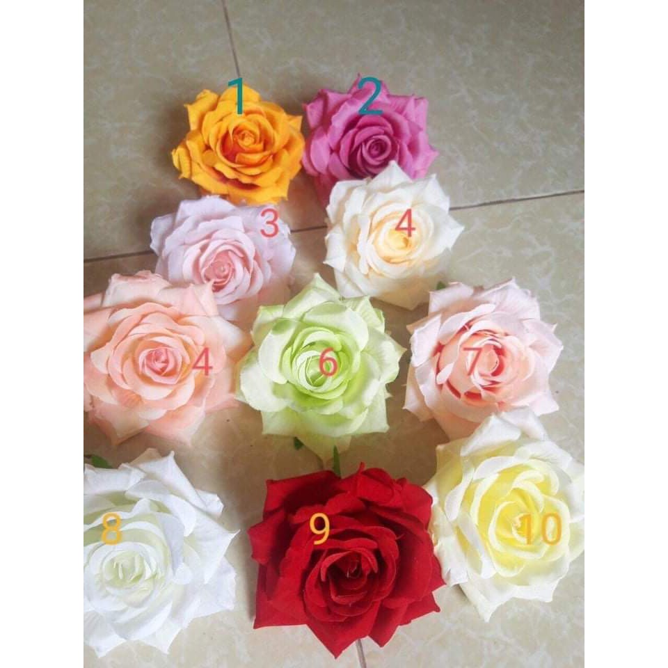 Giới thiệu Hoa lụa, đầu bông hoa hồng giả trang trí tiệc cưới, làm hộp quà tặng cỡ lớn 12cm