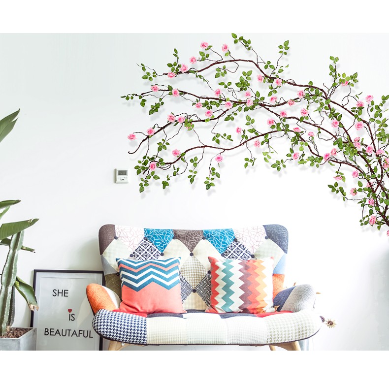 Hoa lụa, dây hoa hồng leo cao cấp trang trí tường tuyệt đẹp dài 1m8