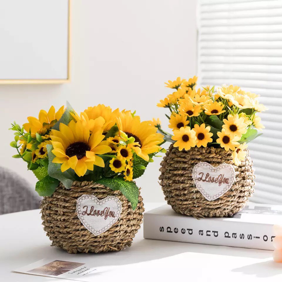 Hoa Lụa - Giỏ Hoa Hướng Dương Giả Mây Cắm Sẵn Trang Trí Để Bàn Trà Phòng Khách, Quán Cafe, Nhà Hàng